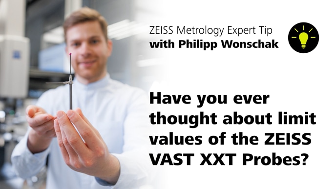 In metrologia, ci sono dei limiti che devono essere rispettati. Ad esempio, il rispetto di vari valori limite per le estensioni delle sonde ZEISS VAST XXT è particolarmente importante per ottenere risultati di misurazione affidabili. In questo video, il nostro esperto Philipp Wonschak spiega come vengono calcolati questi valori limite e come rispettarli.