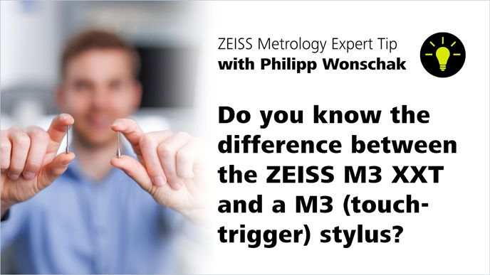 In questo ZEISS Metrology Expert Tip video Philipp Wonschak spiega nel dettaglio la differenza fra uno stilo ZEISS M3 XXT e uno stilo M3 Standard. Inoltre spiega come mai un normale stilo M3 non deve mai essere utilizzato con un sistema tastatori VAST XXT.