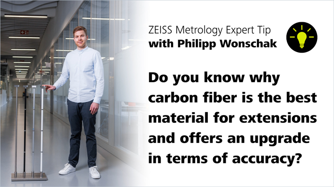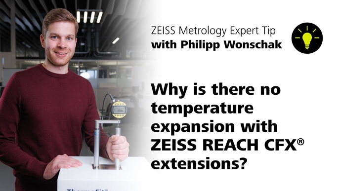 In questo video, il nostro esperto Philipp Wonschak dimostra come puoi migliorare efficacemente la tua macchina di misura ZEISS dal punto di vista della precisione. Questo perché il materiale con cui sono costruite le prolunghe ha l'influenza maggiore sulla precisione di misurazione.
